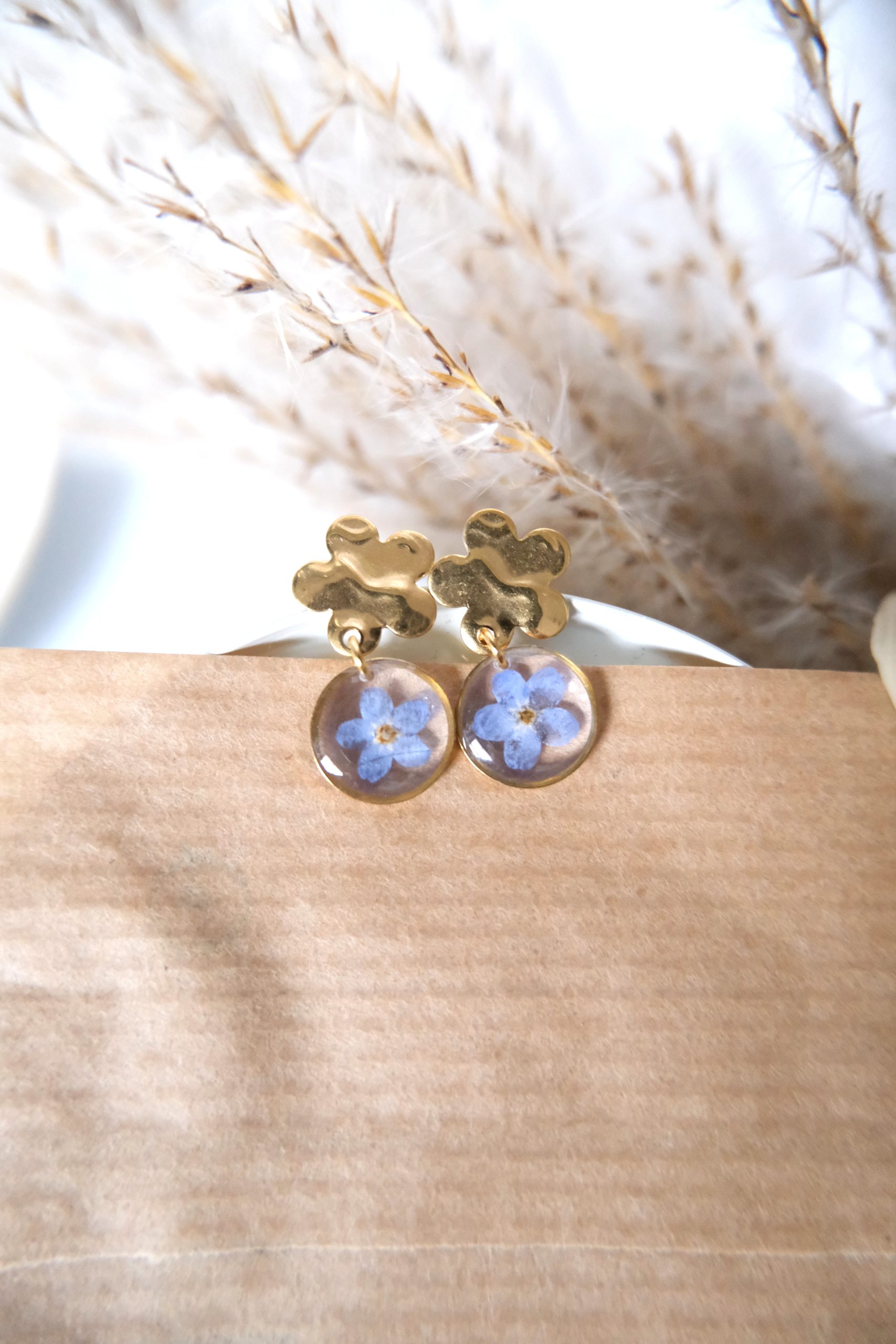 Materiał: hipoalergiczna stal szlachetna, żywica jubilerska, naturalne rośliny