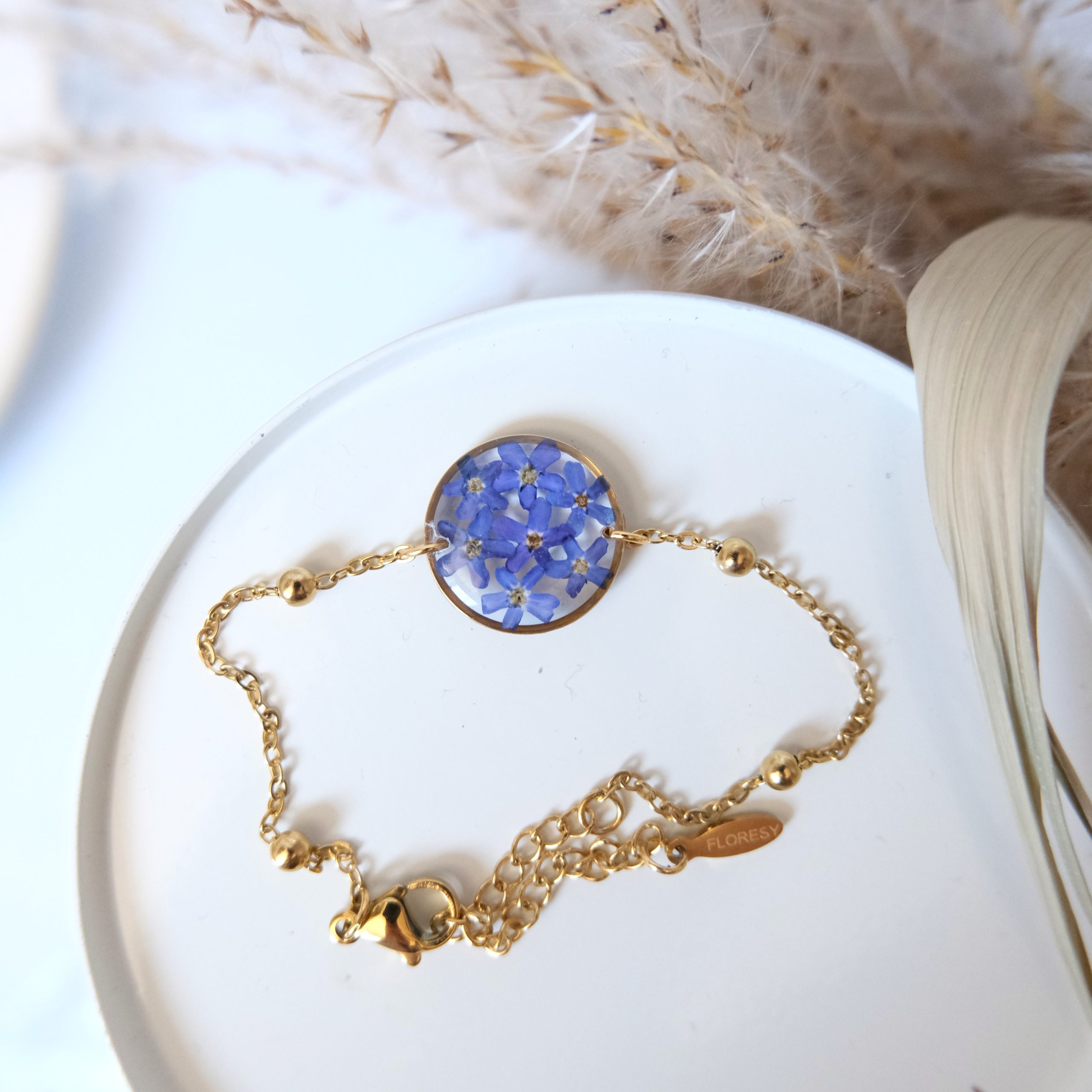 Materiał: hipoalergiczna stal szlachetna, żywica jubilerska, naturalne rośliny