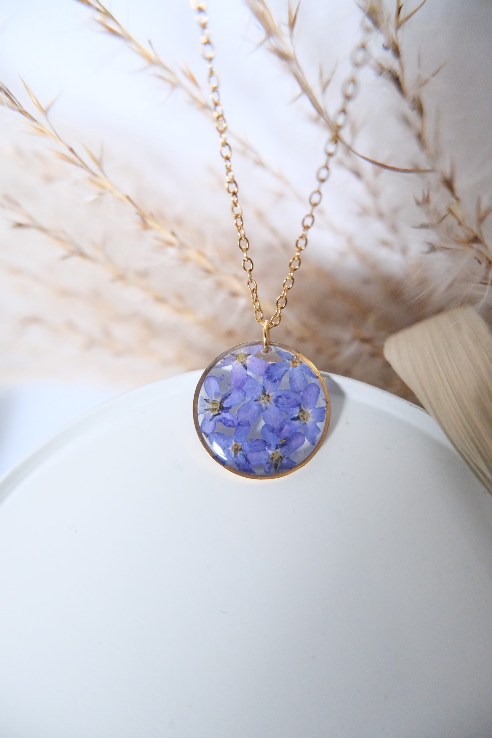 Materiał: hipoalergiczna stal szlachetna, żywica jubilerska, naturalne rośliny