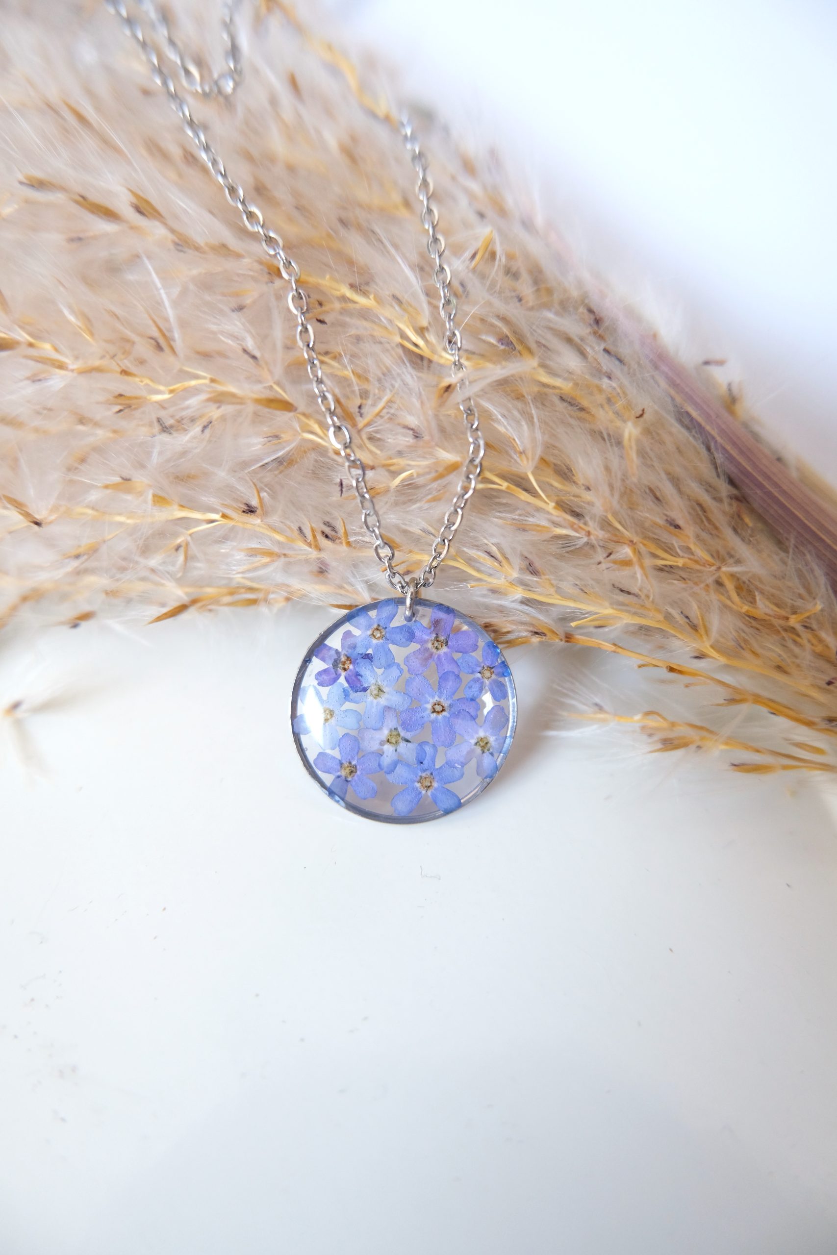 Materiał: hipoalergiczna stal szlachetna, żywica jubilerska, naturalne rośliny.