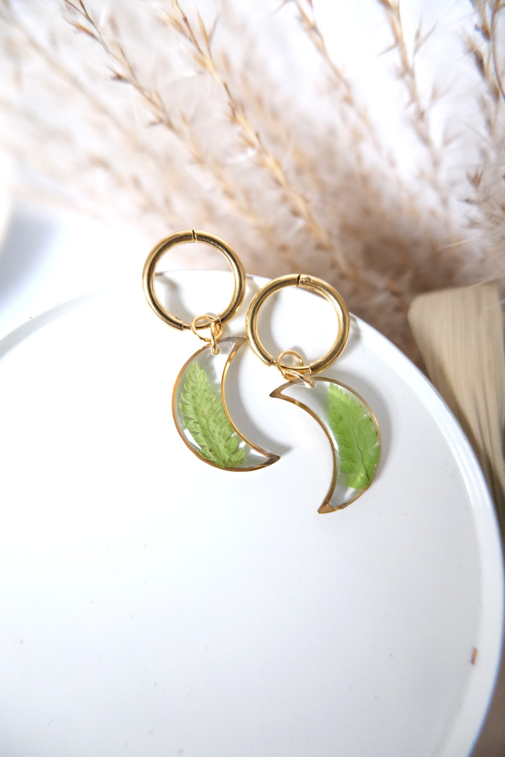 Materiał: hipoalergiczna stal szlachetna, żywica jubilerska, naturalne rośliny