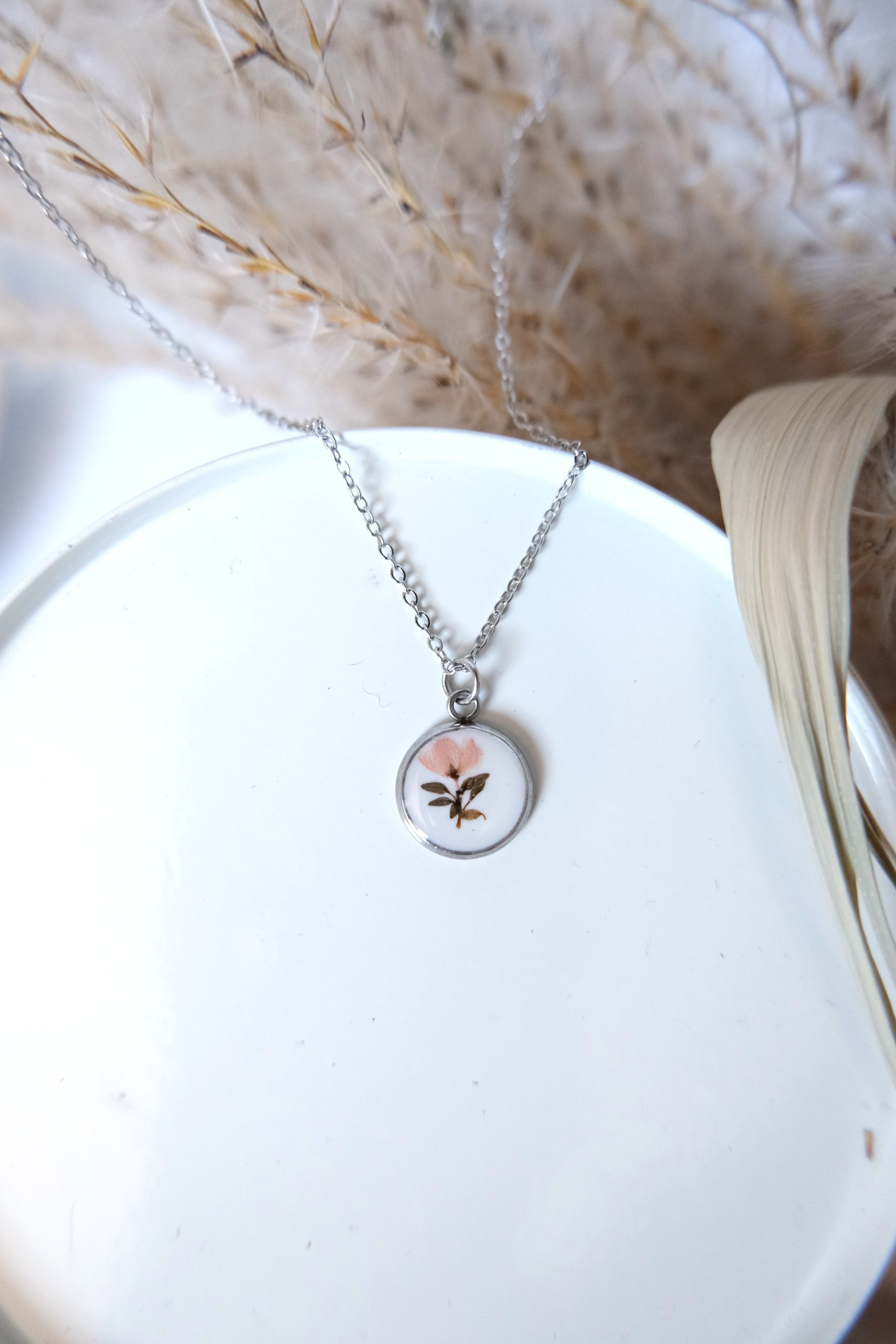 Materiał: hipoalergiczna stal szlachetna, żywica jubilerska, naturalne rośliny